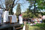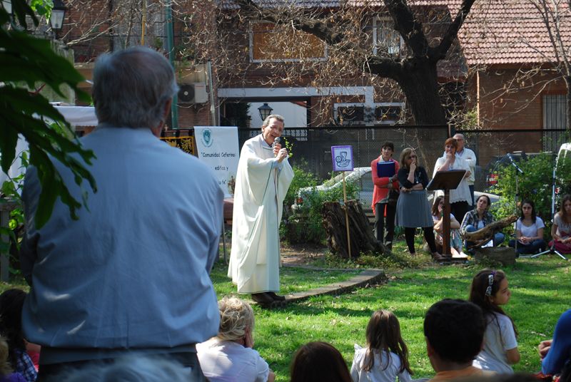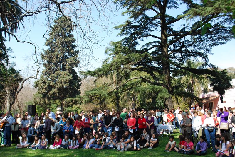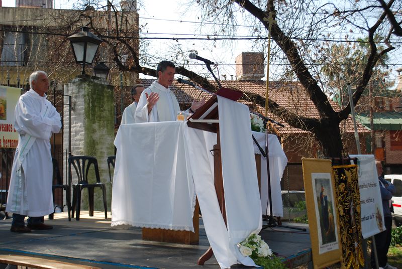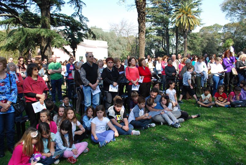 El espacio verde y la bondad del clima dio un marco encantador para la misa principal de las 12hs. Una importante concurrencia de más de 300 personas participó de la celebración. El Padre Agustín Espina presidió la Eucaristía y el Padre Oscar Correa predicó. Los chicos hicieron un hermoso camino con sus pasos sobre cartón y una alabanza con mímica a la Virgen en el momento de la acción de gracias. Hubo un coro numeroso formado por los grupos de canto de las diversas misas de la parroquia y la capilla San José.