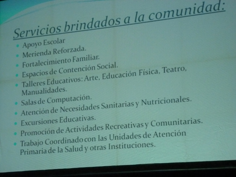 1- Volver a presentar a la comunidad los emprendimientos de la “Casita” y la “casa del adolescente”, centros de educación complementaria para chicos/as y adolescentes del barrio “Las Flores” de Villa Martelli.