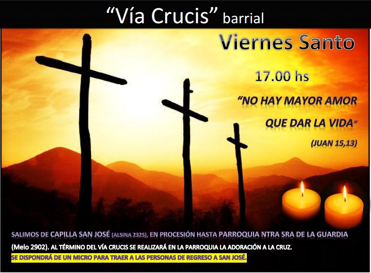 - 17.00 hs. Acción Litúrgica de la Pasión del Señor (inicio en Capilla San José).